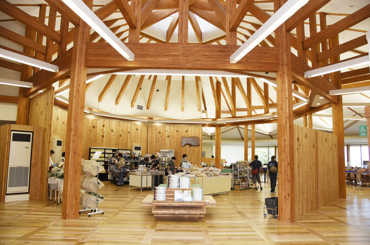 来園者1200万人達成と時を同じくして、レストラン厚田亭が昨2022年8月にリニューアルオープンしました。ひときわ目を引く堂々とした造りの外観。天然木を基調とした温かみのある館内には、広々としたお食事スペースや小上がり、お土産等の物品販売コーナー、法事会食用の小部屋などを完備しています。