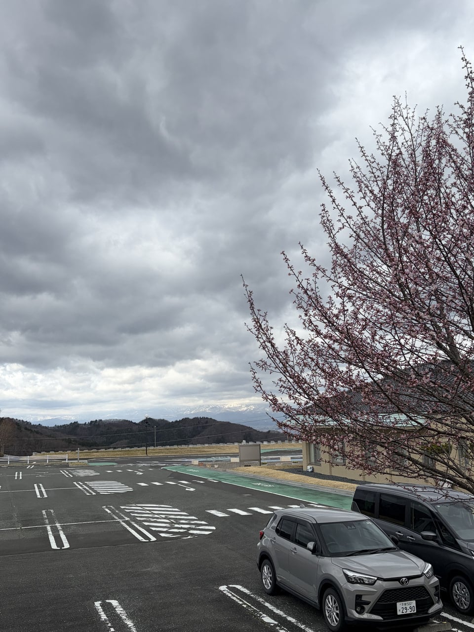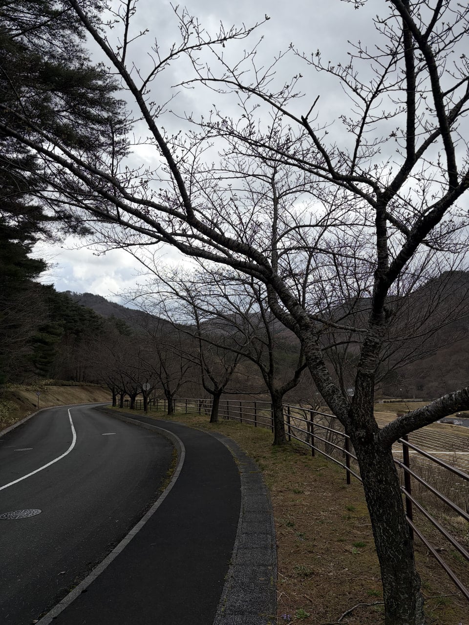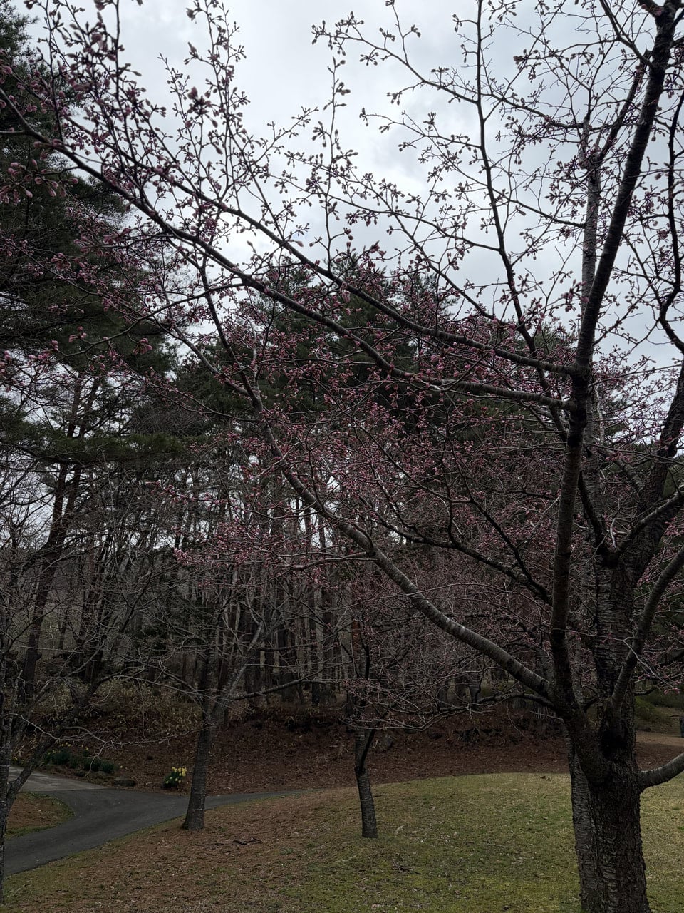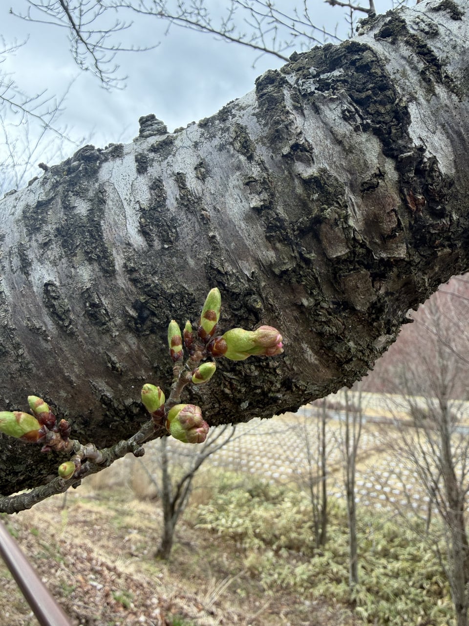 休憩棟からレストランへ続く沿道の桜はまだつぼみです。