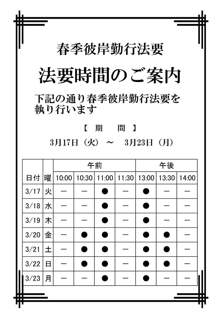 春季彼岸勤行法要及び3月の休園日のお知らせ