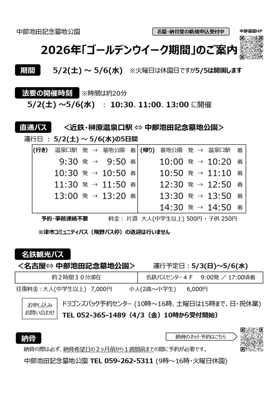 中部池田記念墓地公園・中部多宝納骨堂・中部常楽納骨堂(三重)