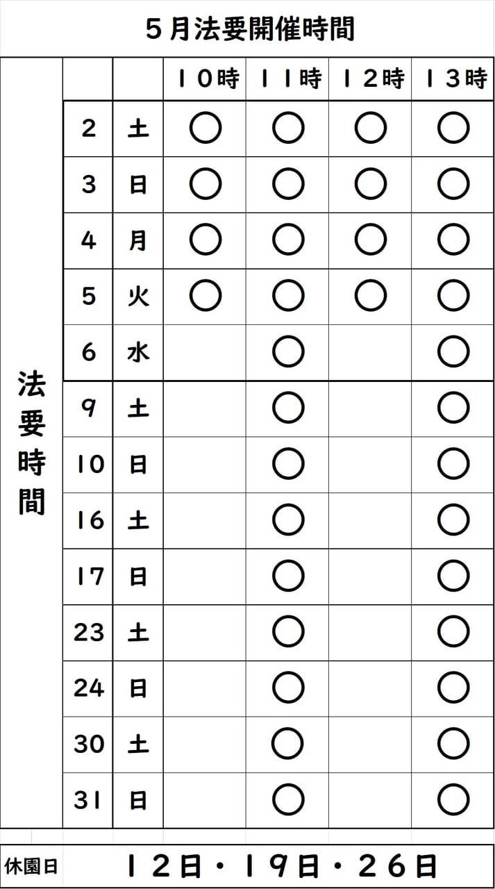 5月のGW期間は多くの方の来園が予想されるため、