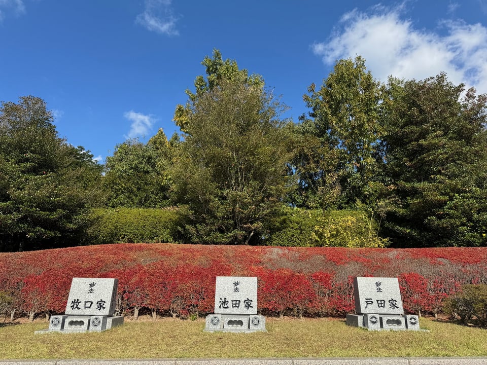 秋の季語「山粧う(やまよそおう)」とのとおり、墓園の木々も色づきがすすんでいます。