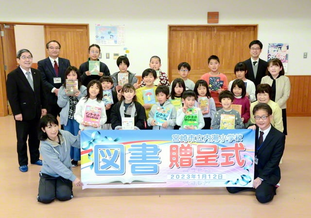 宮崎市の内海小学校に2023年1月12日、創価学会から優良図書が贈られた。これは、2021年9月に発生した台風14号の影響で、土砂崩れなどの甚大な被害に遭った地域に対する、支援の一環として行われたもの。