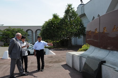 「世界平和の碑」や沖縄池田平和記念館付属展示室、「人間革命」展などを見学したコールダー副学長は、「池田名誉会長が、『世界平和の碑』を平和の発信地として後世に残したことに、大変に感銘を受けました」と感想を。