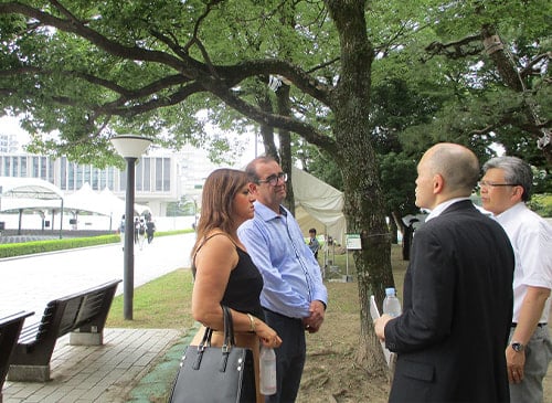この日、来賓として訪れたブラジル・セルジペ連邦大学のアントニオリ総長一行は、広島平和記念資料館、平和記念公園を見学し、慰霊碑に献花した。