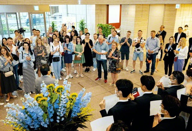 民音公演のため来日した「ウクライナ国立民族舞踊団」が2023年6月14日、東京・信濃町の民音文化センターを訪問。民音の伊藤代表理事らが歓迎した。
