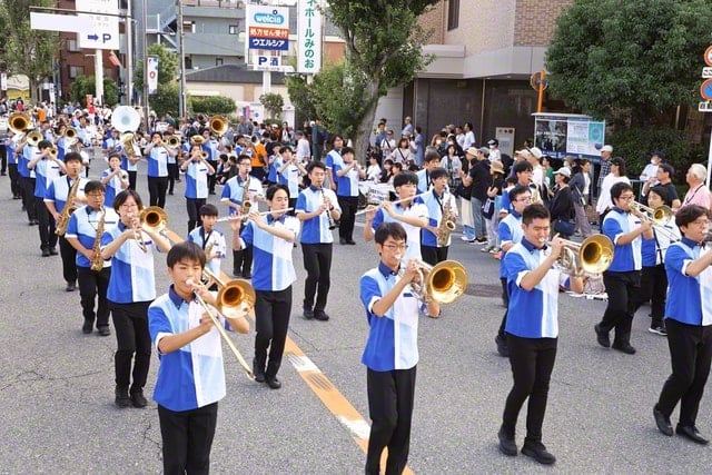 関西の歌「常勝の空」などを披露しながら行進。観客からは「力強い演奏に、勇気をもらいました」との声が寄せられた。