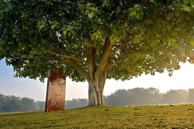 この日、園内に立つ「世界平和の碑」のほど近くに、「世界青年学会飛翔の菩提樹」が植樹された。