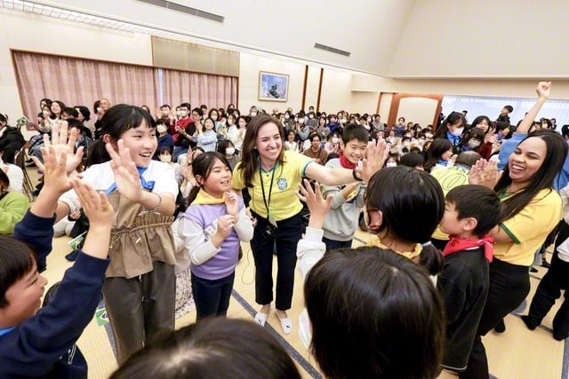 少年少女合唱団のメンバーが、「Be Brave! 獅子の心で」の歌とダンスで元気いっぱいに歓迎。歌い終わると、ブラジルのメンバーは、「エ・ピケ、エ・ピケ!」との歓呼の声とスタンディングオベーションで真心に応えた。