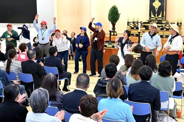 研修会で来日中のSGI(創価学会インタナショナル)の友と、広布の誓いを新たにする交流交歓会が2025年4月13日、東海道と関東の10会場で開催された。