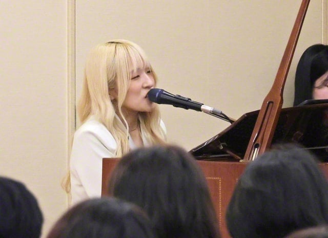 みつまたさんが弾き語りを披露。近藤さんが母の被爆体験を紹介し、母が訴え続けていた生命の尊さや平和への願いを語り継ぐ思いを述べた。