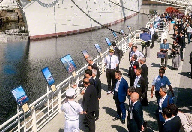 同日のオープニングセレモニーには多数の来賓が出席。波涛会の河窪さんがあいさつし、山中横浜市長が「船乗りの皆さまの写真から、平和への思いを強く感じました」と祝辞を述べた。