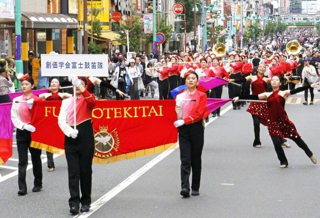 首都圏の富士鼓笛隊は13日、東京・新宿区の第42回「大久保まつり」のパレードに出演。平和のメロディーを秋空に響かせた。