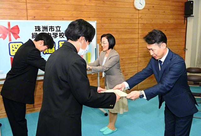 石川・珠洲市の緑丘中学校では、2025年11月17日に贈呈式が行われた。