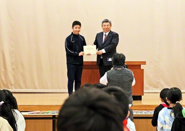 青森・深浦町の深浦小学校への贈呈式(同下=18日)では、小笠原校長が「読書に挑戦して考える力を養ってほしい」とあいさつ。同町教育委員会の草創教育長に続き、小山青森総県長が児童に目録を手渡した。児童からは「新しい本を読むのが楽しみ」などの声が寄せられた。