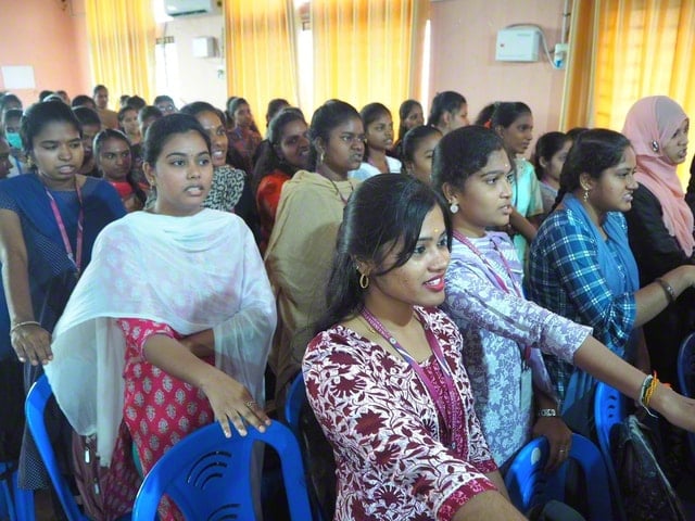 来賓として出席したインド創価学会(BSG)のR・シュラヴァニ氏(チェンナイ西圏女子部長)は、池田先生の書籍『青春対話』を読み、実践することで人生が好転したことを述懐。池田先生の哲学を学ぶ誇りを胸に、勝利の人生をと語った。同じくBSGのラタ・ラマヌジャン氏(同副婦人部長)が、学生らにエールを送った。