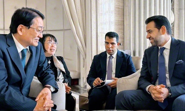 また会期中、派遣団はカザフスタン共和国のマウレン・アシンバエフ上院議長とも和やかに語り合った。同上院議長は、自身が中心者を務める同国政府主催の世界伝統宗教リーダー会議における学会の貢献に謝意を示し、気候変動やAIの課題について、さらに意見交換を重ねていきたいと述べた。