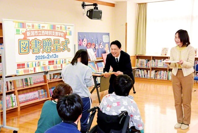 新潟市立西特別支援学校に2026年2月13日、創価学会から優良図書と書架が贈呈された。今後5年間にわたって、毎年追加で図書が贈られる。