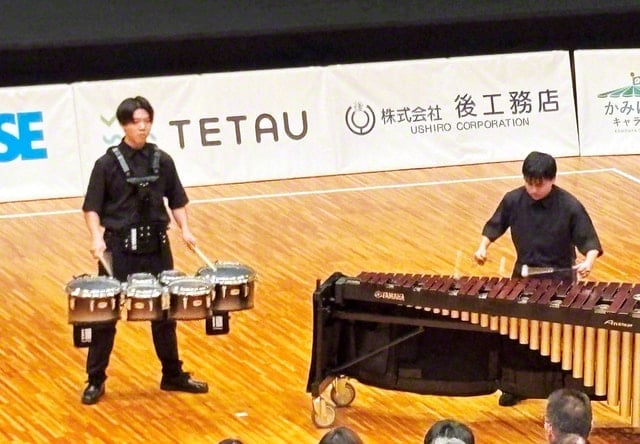 部門別に躍動の演奏・演技を披露。パーカッションチームがディビジョンⅢ部門で1位に輝いた。