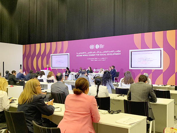 11月4日から6日まで、カタール・ドーハにて「第2回世界社会開発サミット(WSSD2: Second World Summit for Social Development)」が開催されました。1995年にデンマーク・コペンハーゲンで開催された第1回サミットに続き30年ぶりに開催される今回のサミットでは、前回のサミット以降の急速な社会環境の変化を受け、貧困撲滅や社会的包摂をはじめとする幅広い分野の社会課題について多様なステークホルダーが参加し議論が行われました。
