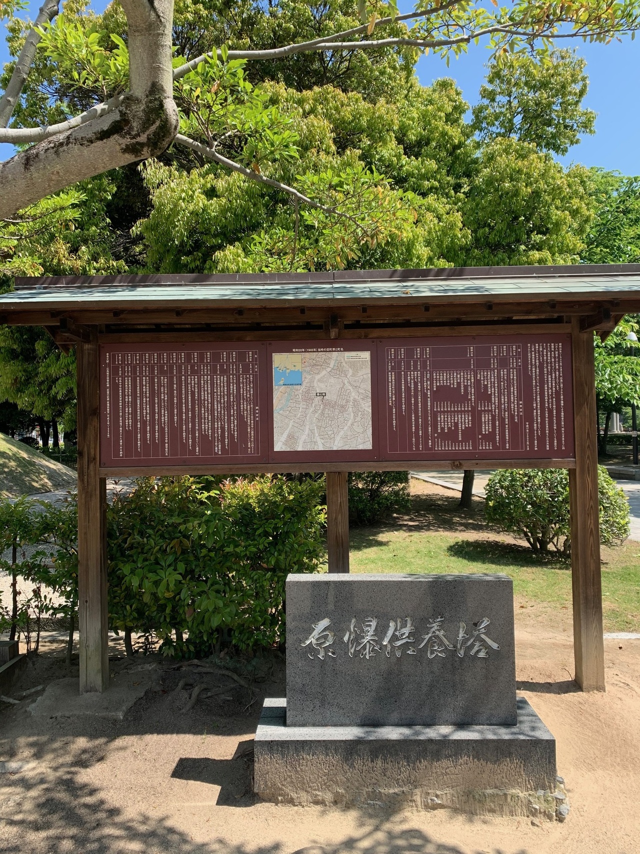 慰霊碑の中の石碑には、「安らかに眠ってください。過ちは繰り返しませぬから」という碑文が彫られとる。これはすべての人々が世界平和の実現を誓う言葉なんじゃ。